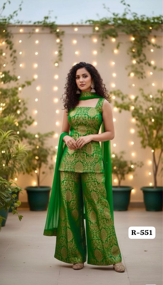 Turn heads this festive season in our stunning Brocade Co-ord Sets with chiffon dupatta!